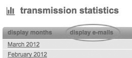 In the transmission- statistic you see the data collected from Smartmail (Traffic, Total). Also you see, if exist, the numbers of test-sendings, clicks on the subsriber-link and the number of subscribers who have completed the optin-confirmation. Next to the view 'display months' you also can select 'display e-mails'. So Smartmail outputs the above mentioned figures for each mailing.
