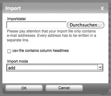 | You create a blacklist (also called Robinson list) in order to restrict email addresses from registering in you subscriber list. If a person tries to sign up for one of your subscriber lists, but has an email address that is registered in your blacklist, he will not notice the exclusion. Those addresses, however, which are already signed up for a subscriber list, will be excluded from dispatch directly after having been registered in the blacklist. Therefore, these subscribers will not receive any of your mailings anymore. |