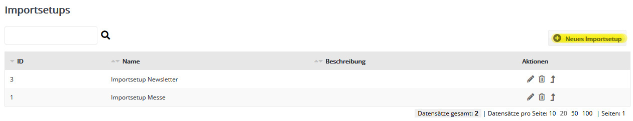 Neues Importsetup erstellenUm ein neues Importsetup anzulegen, klicken Sie auf 'Neues Importsetup'.
