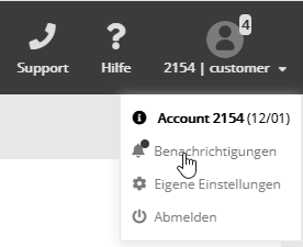 Sonstiges: BenachrichtigungsdienstDer Benachrichtigungsdienst informiert Sie bei Auftreten wichtiger Ereignisse innerhalb Ihres Accounts. So können Sie bei Bedarf schnell reagieren, etwa um einen fehlgeschlagenen Versand zu korrigieren und sofort nachzuholen. Wenn Sie über das entsprechende Benutzerrecht verfügen, finden Sie unterhalb Ihres Profilbildes den Menüpunkt 'Benachrichtigungen'.